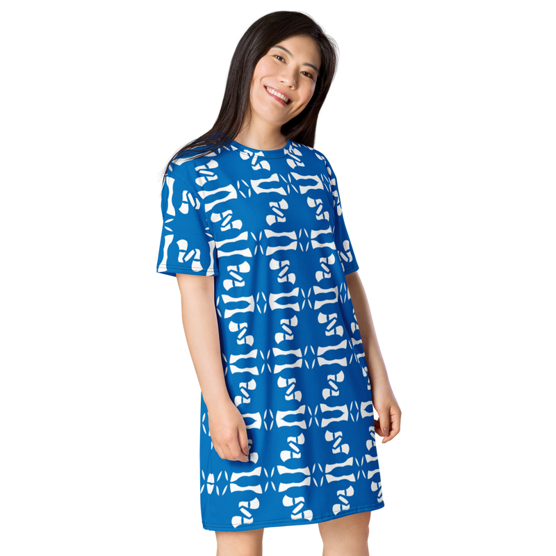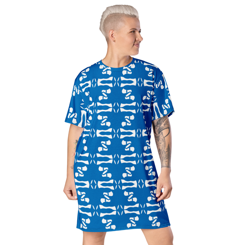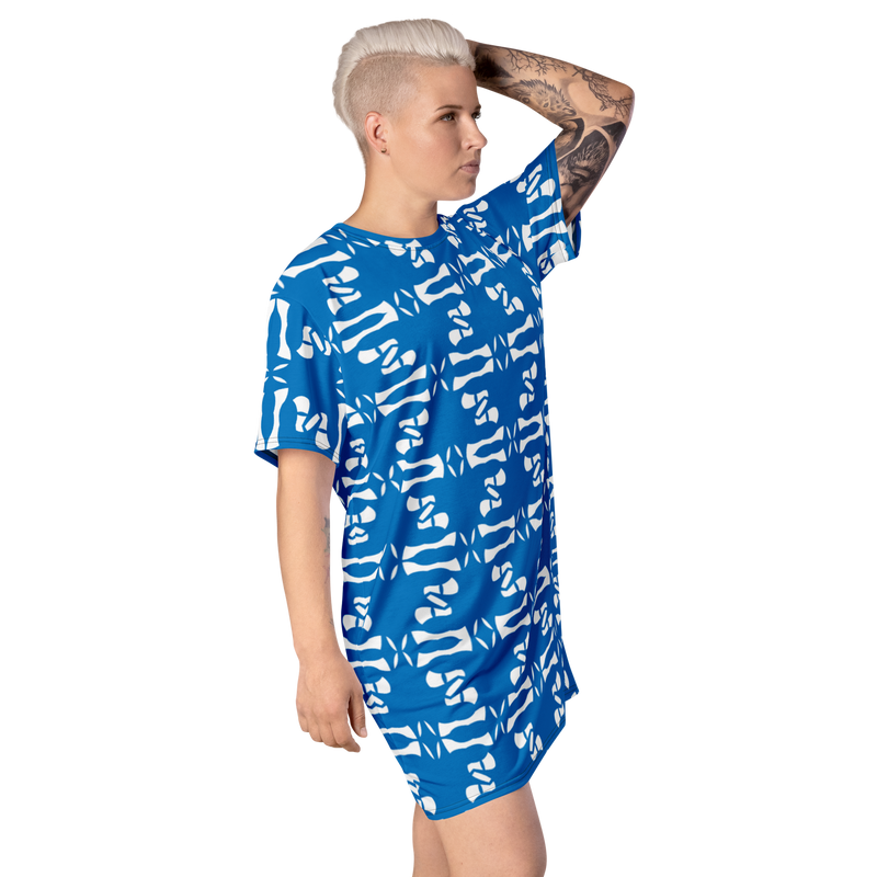 Recursia Modern Moiré VIII T-Shirt Dress In Blue